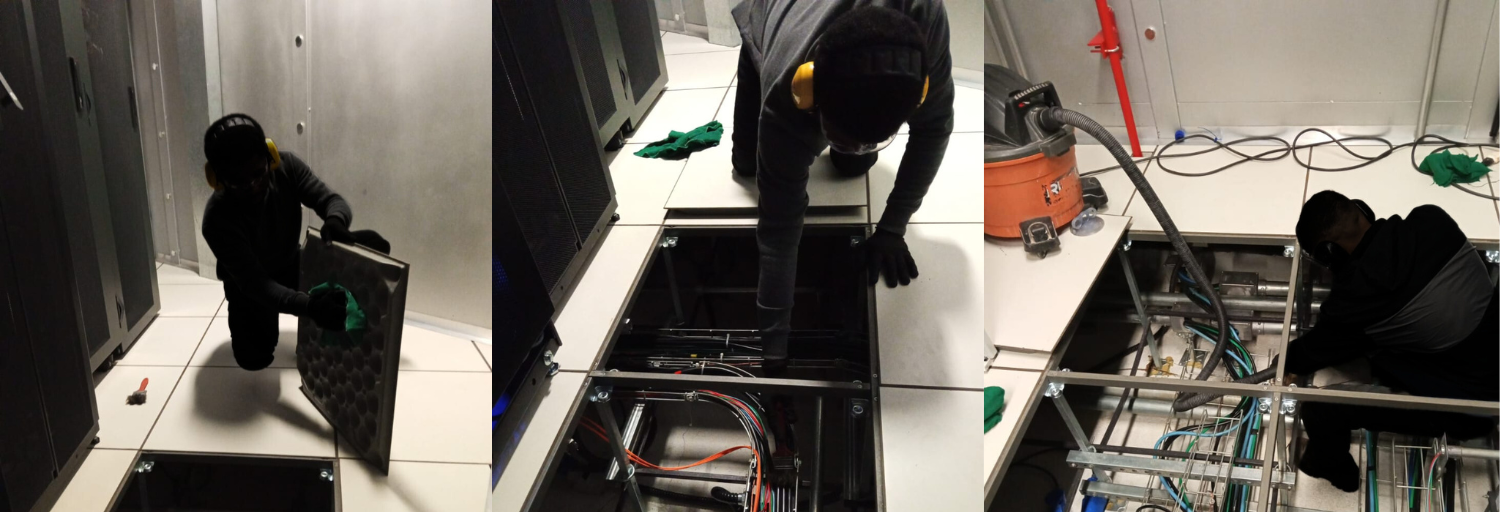- Remoção de poeira e partículas com aspiradores HEPA. - Higienização de pisos elevados e áreas de circulação sem comprometer o fluxo de ar.